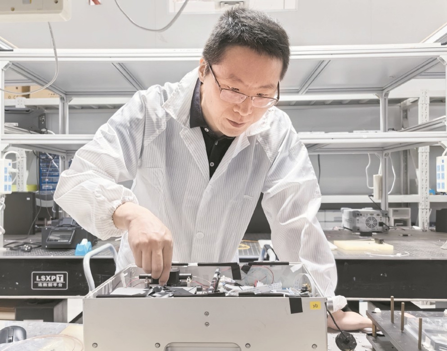 长假期间,杨康文留守实验室,和团队成员加紧调试飞秒激光设备。 本报记者 储舒婷摄