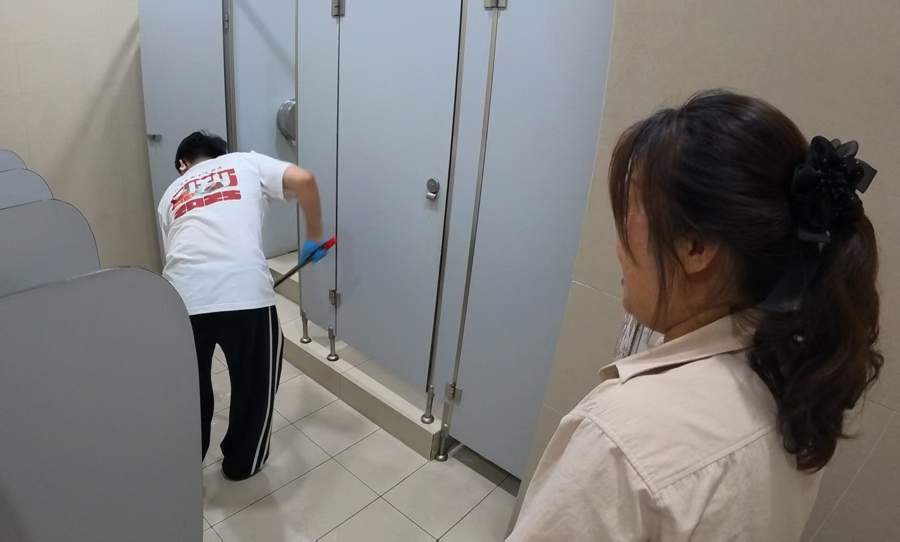 大男孩们的足迹从上海延伸到福建、湖北,从校园到街头。在餐厅,从最初“考虑戴副手套”到后来“顾不得满手油”,帮厨、倒茶、点餐、上菜、清台,脚下生风忙得团团转;不出图书馆,跟着保洁阿姨一天走了2万步,才终于知道为何最角落的书架也一尘不染,餐饮间的台面、洗手间的坑位为何能整日保持清洁;在凌晨三点的水产市场,学会“有肚子的鱼便宜”的行内门道,掌握捞鱼称虾的技能;在煎饼摊,见证摊主奶奶用最好的盐,履行“东西干净,心里才踏实”的坚持。